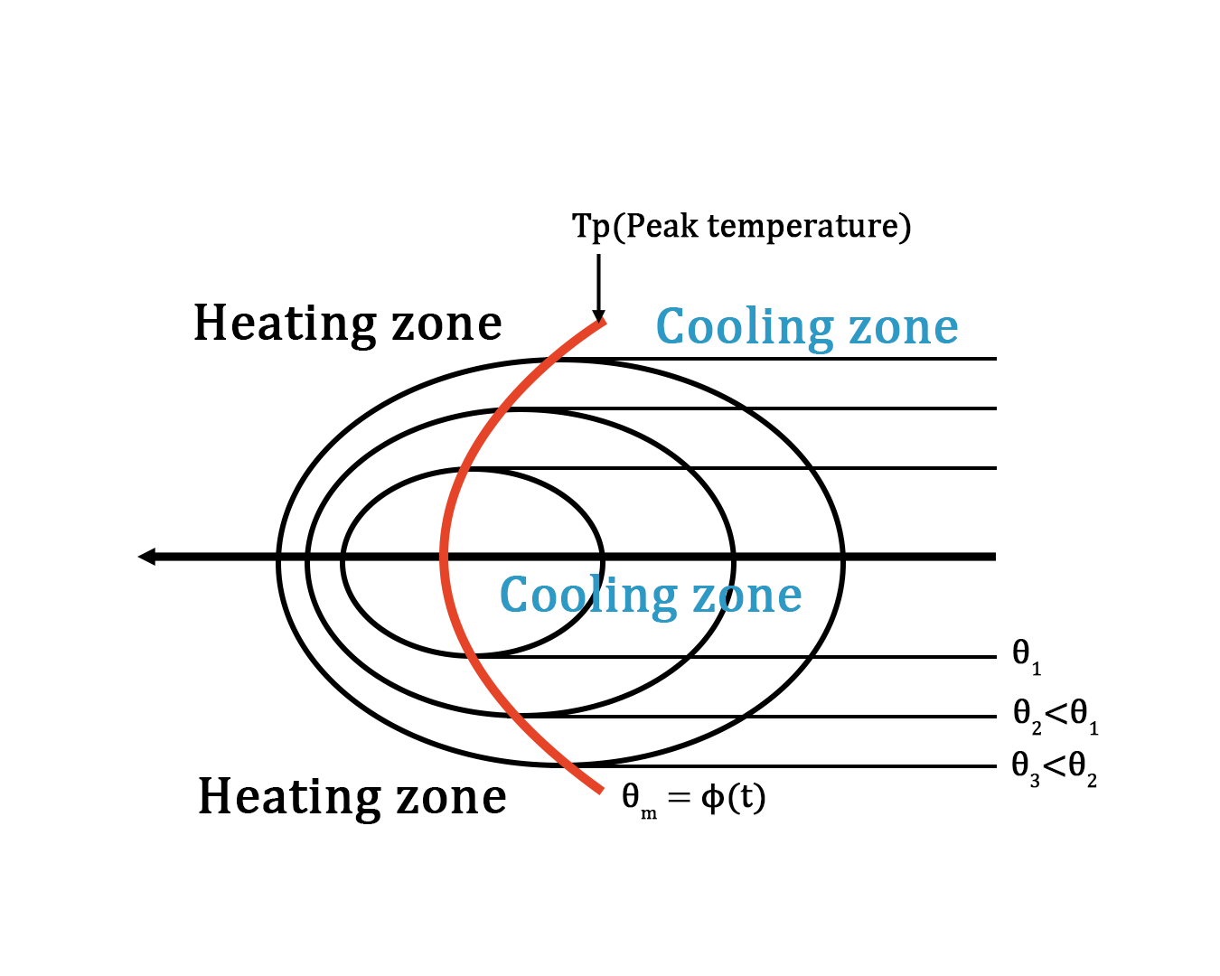 Peak temperature separates the heating & cooling zone. Peak temperature will determine the cooling rate. Points closer to peak temperature will cool fast and the points further away from the peak temperature will cool slow. Peak temperature is very important for metallurgical changes in the material.