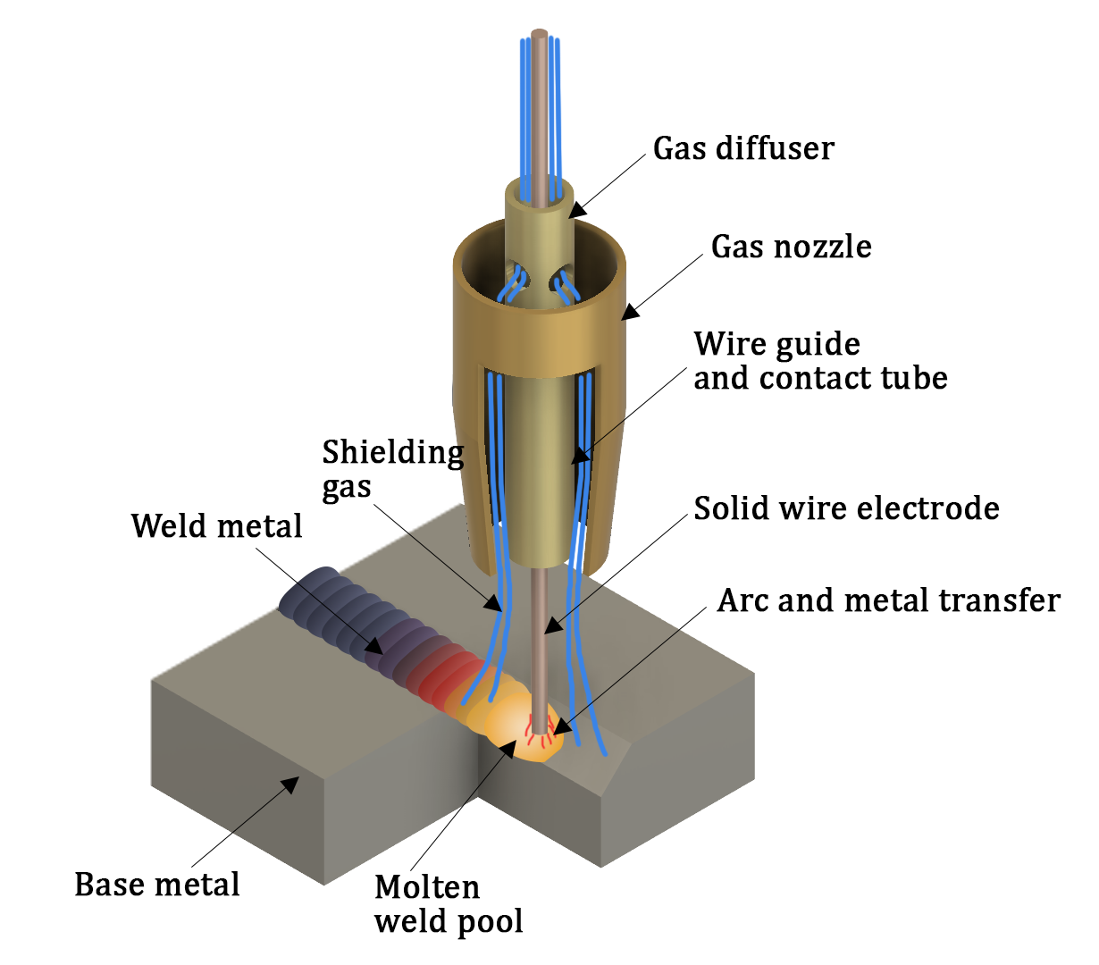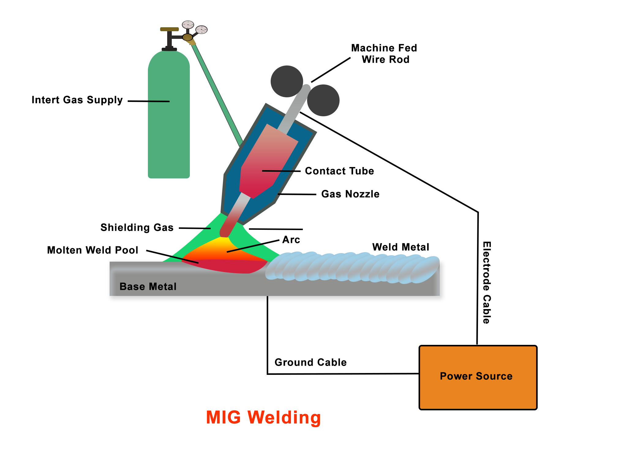 The welding procedure known as Metal Inert Gas welding, otherwise called as Gas Metal Arc Welding (GMAW), uses a constant feeding of wire as the electrode and an inert or semi-inert shielding gas to prevent the weld from outside contamination. In GMAW welding, the workpiece and the constantly supplied wire electrode form an arc that melts the filler metal and the base metal to form a weld pool. The gas protects the weld pool from air contamination, resulting in a high-quality weld. Due to its fast welding speeds, minimum workpiece preparation requirements, low spatter, and extensive application, GMAW welding is often employed in a variety of sectors, including the automotive, building, and shipbuilding industries.