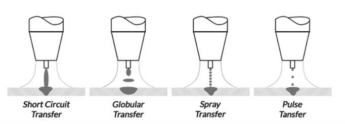 The molten metal transfer in GMAW welding refers to the process by which the molten electrode forms metal droplets that is transferred to the workpiece to form the weld bead. In the GMAW process, several kinds of metal transfer are available, such as: