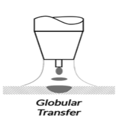 In this type of transfer, the electrode is held further away from the workpiece and the filler metal forms into large droplets that transfer to the workpiece and form the weld. This type of transfer is typically used for high welding current and high welding speed applications. It can be employed only for ferrous metals.