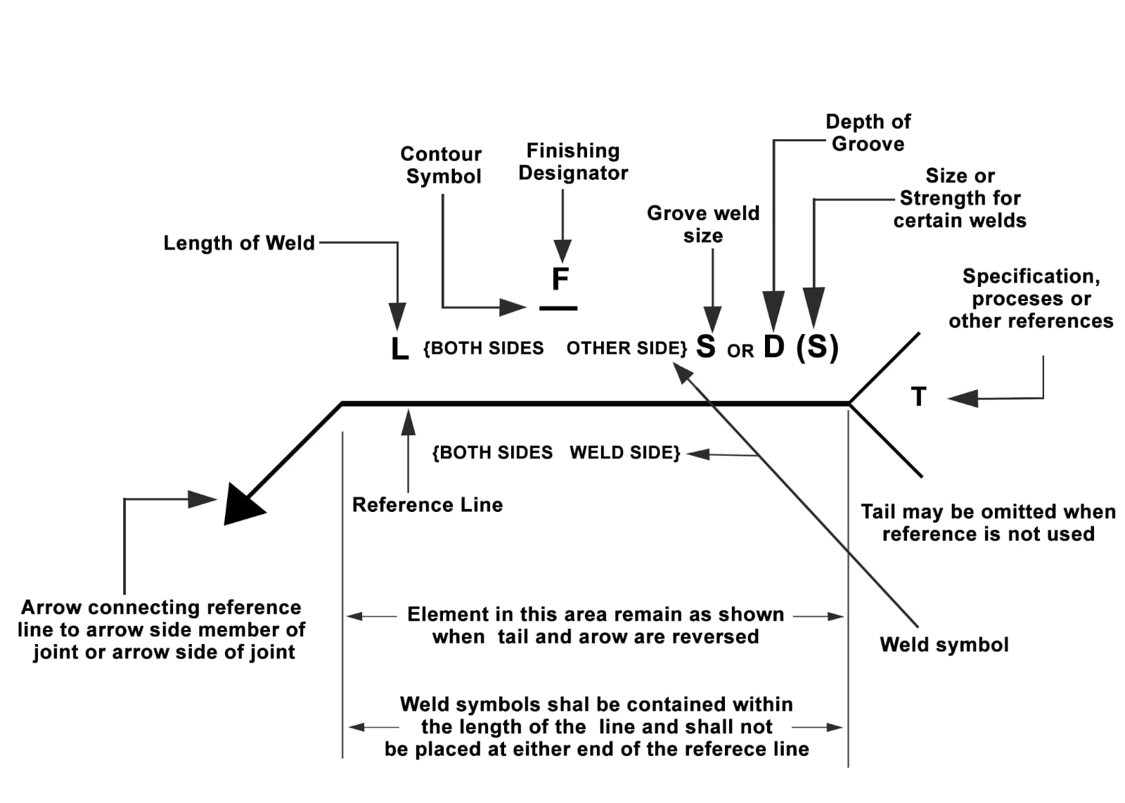 Tail: Tail provides supplementary information about the weld such as welding specifications, process, etc. The tail may be omitted if there are no specifications.