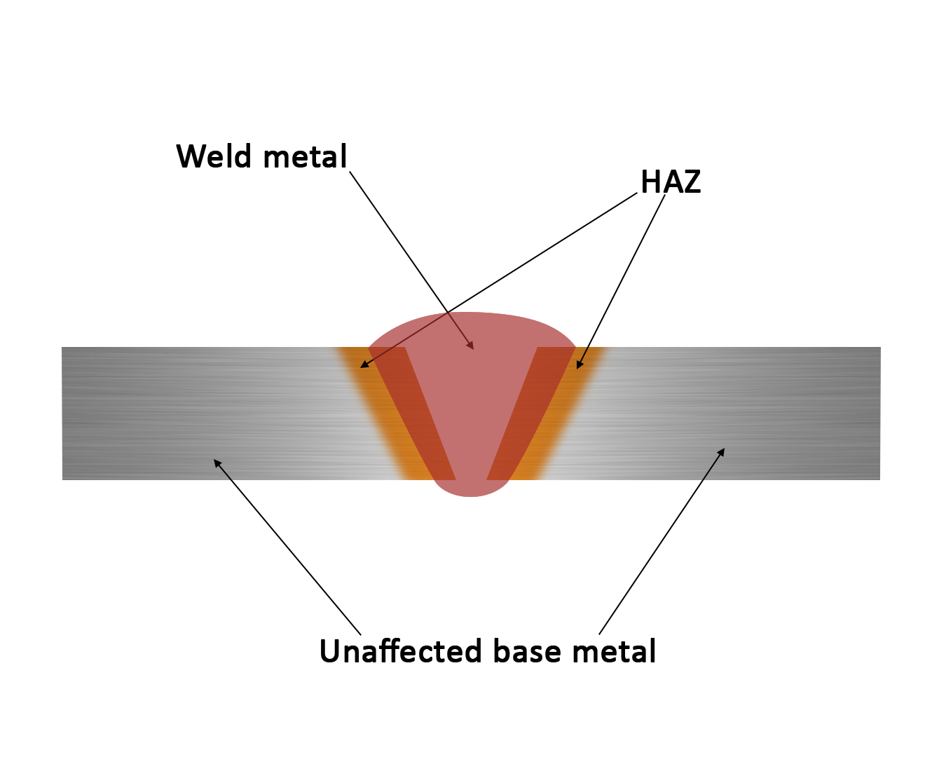 As the name suggests this is a zone that is affected by the heat used for welding. It is the region that does not undergo melting and whose properties have changed due to exposure to relatively high temperatures during welding. Figure 1 shows the HAZ between the weld and unaffected parent metal.